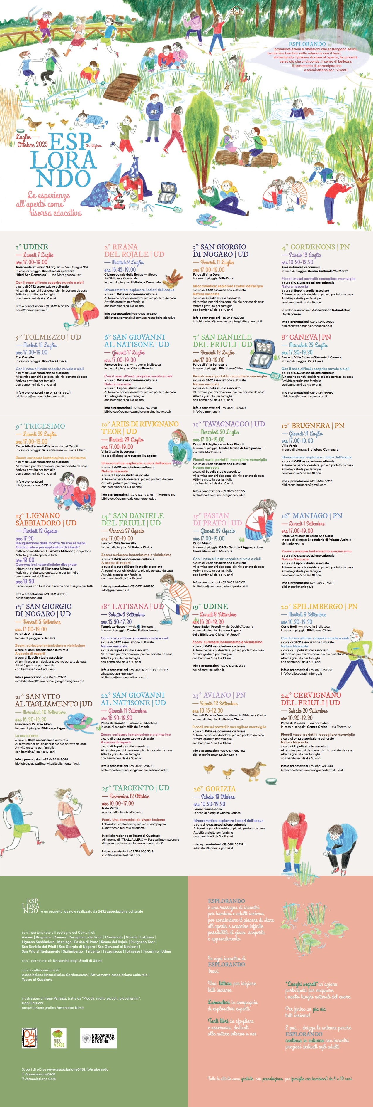 con il partenariato e il sostegno dei Comuni di Aviano, Brugnera, Caneva, Cervignano del Friuli, Cordenons, Gorizia, Latisana, Lignano Sabbiadoro, Maniago, Pasian di Prato, Reana del Rojale, Rivignano Teor, San Daniele del Friuli, San Giorgio di Nogaro, San Giovanni al Natisone, San Vito al Tagliamento, Spilimbergo, Tarcento, Tavagnacco, Tolmezzo, Tricesimo, Udine