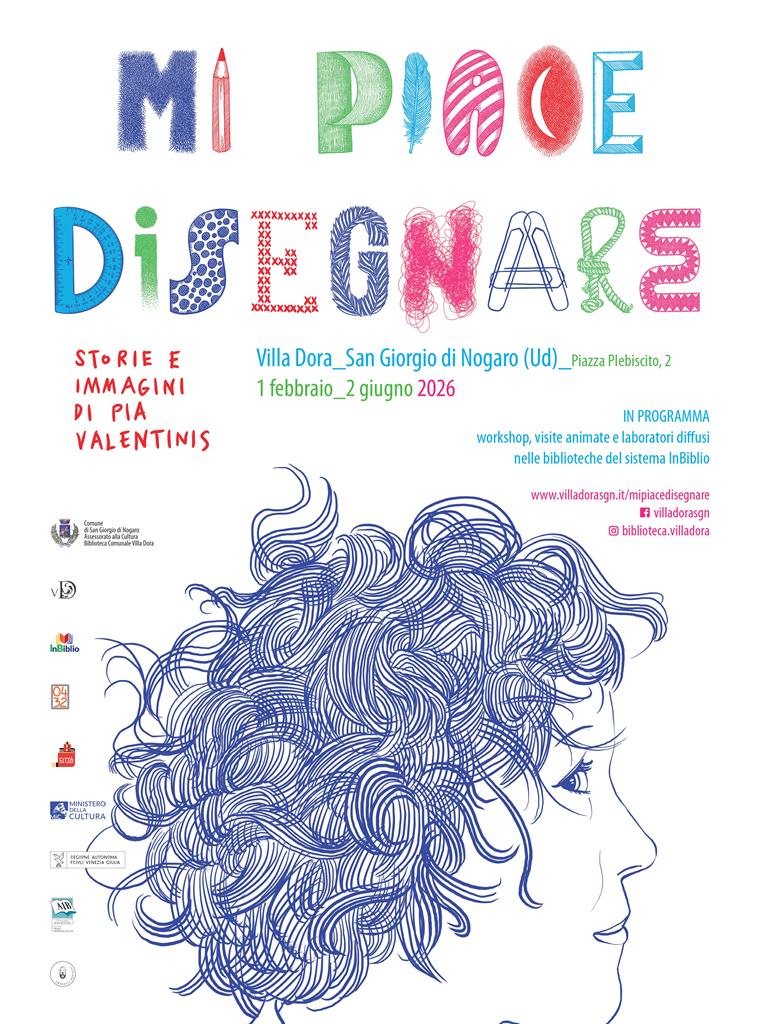 Mi piace disegnare è un progetto promosso da Biblioteca Villa Dora, Comune di San Giorgio di Nogaro, Sistema Bibliotecario InBiblio, in collaborazione con Associazione Culturale 0432, Emanuele Bertossi, con il patrocinio dell'Associazione Italiana Biblioteche FVG e il sostegno della Regione Autonoma FVG, realizzato con il contributo del Ministero della Cultura – Direzione generale Biblioteche e diritto d’autore – Fondo per la promozione della lettura, della tutela e della valorizzazione del patrimonio librario 2025.